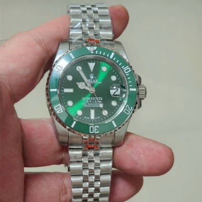 40MM RELAX Green Dial Sapphire Glass Stainless Steel Automatic Watch Seiko NH35 Automatic Movement Jubilee Bracelet