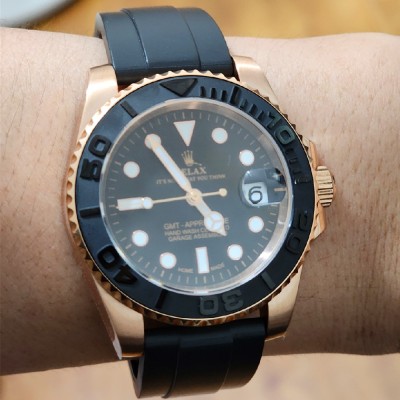 40mm relax Rose Gold Yacht Style Stainless Steel Rubber Strap Watch Seiko NH35 Automatic Movement